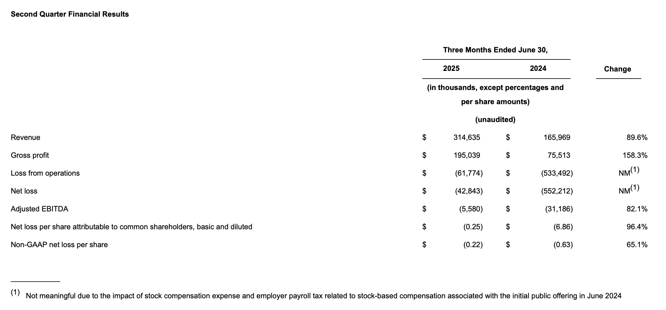 · Adjusted EBITDA of ($5.6 million) in the second quarter of 2025 compared to ($31.2 million) in the second quarter of 2024, an improvement of $25.6 million year-over-year.