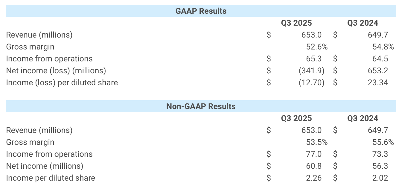 Non-GAAP net income for the third quarter of 2025 was $60.8 million, or $2.26 per share, on a diluted basis, compared to $56.3 million, or $2.02 per share, on a diluted basis, during the same period in 2024.